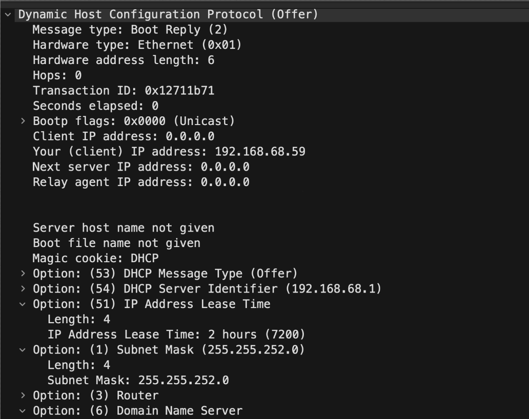Here are screenshots of the normal DHCP Offer: